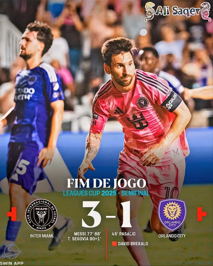 سجل النجم الأرجنتيني ليونيل ميسي هدفين ليقود فريقه إنتر ميامي للفوز على أورلاندو سيتي 3-1 اليوم الخميس للتأهل إلى نهائي كأس الدوريات لكرة القدم.
