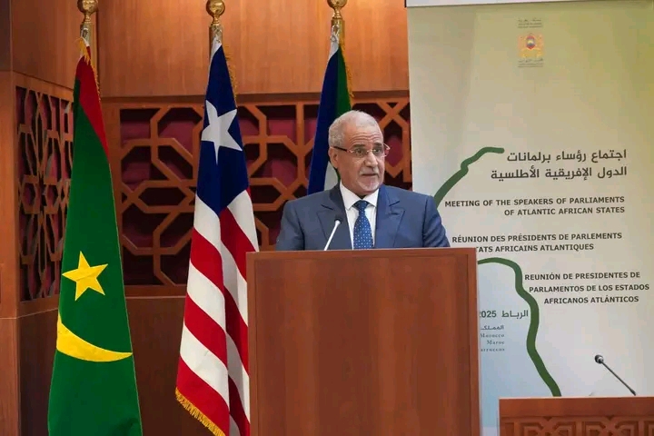 شار رئيس الجمعية الوطنية السيد محمد بمب مگت،في اجتماع رؤساء برلمانات الدول الافريقية الأطلسية المنعقد بالعاصمة المغربية الرباط.