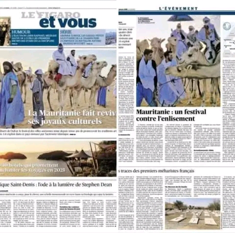في عددها الصادر بتاريخ 2 يناير 2025، خصصت صحيفة "لو فيغارو" الفرنسية مساحة واسعة لتسليط الضوء على مهرجان مدائن التراث، الذي يُنظم سنويًا في موريتانيا لإحياء التراث الثقافي والإنساني للمدن التاريخية الأربع: شنقيط، وادان، تيشيت، وولاتة.