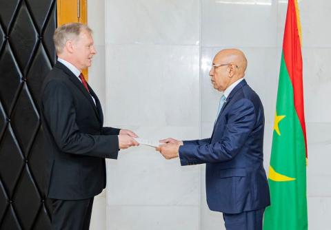 تسلم رئيس الجمهورية، السيد محمد ولد الشيخ الغزواني، اليوم الثلاثاء بالقصر الرئاسي في نواكشوط، أوراق اعتماد السيد فلوريان ريندل، بوصفه سفيرا فوق العادة وكامل السلطة، لجمهورية ألمانيا الاتحادية، لدى الجمهورية الإسلامية الموريتانية.