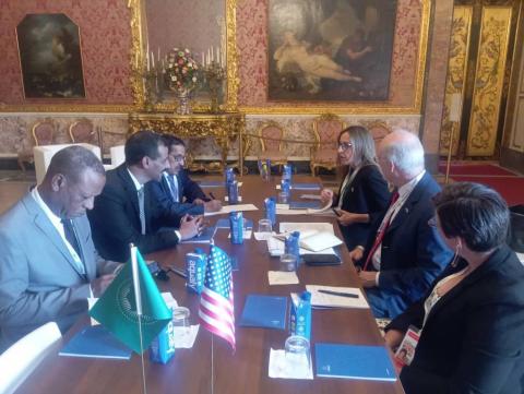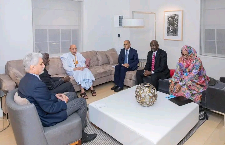 التقى فخامة رئيس الجمهورية، رئيس الاتحاد الإفريقي السيد محمد ولد الشيخ الغزواني، مساء السبت في نيويورك، برئيس المفوضية الإفريقية السيد موسى فكي محمد.