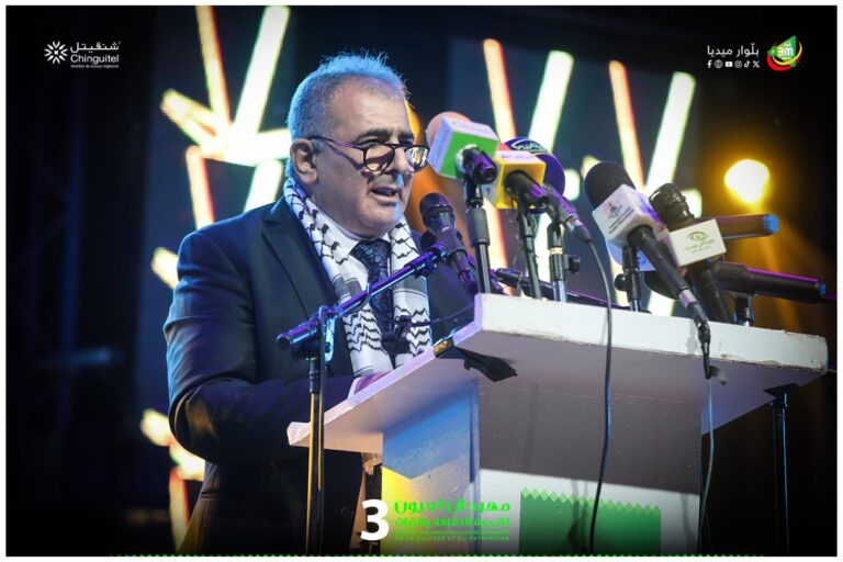 عبر سفير دولة فلسطين محمد الأسعد عن تقديره للجهود الكبيرة التى يبذلها المختار ولد اغويزى من خلال حضور القضية الفلسطينية فى مهرجان لعيون لتنمية الثقافة و التراث و تقليده بالكوفية الفلسطينسة التى هي رمز النضال و التضحية .