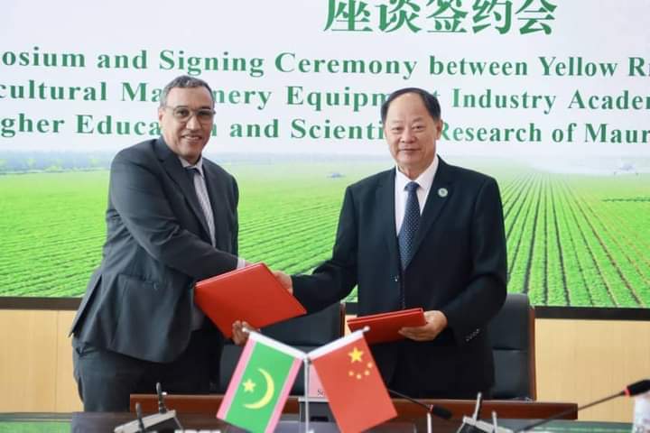 أشرف وزير التعليم العالي يعقوب ولد أمين اليوم، في بكين، على توقيع اتفاقية تعاون بين الوزارة وأكاديمية دلتا النهر الأصفر لبحوث وصناعة آلات ومعدات الزراعة الذكية، في الصين.