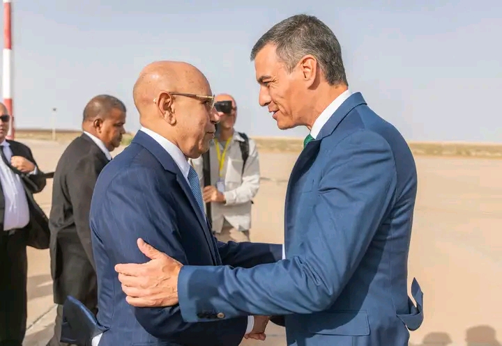 استقبل فخامة رئيس الجمهورية، رئيس الاتحاد الافريقي، السيد محمد ولد الشيخ الغزواني، مساء اليوم بمطار نواكشوط الدولي أم التونسي، معالي رئيس الحكومة الإسبانية السيد بيدرو سانشيز.