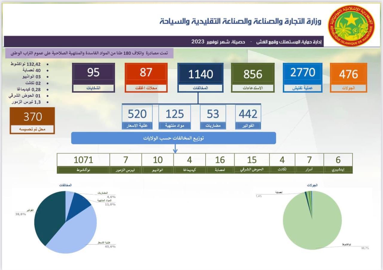 وقالت الوزارة في إيجاز حول حصيلة عمل مصلحة حماية المستهلك التابعة لها خلال شهر نوفمبر المنقضي، إن عملية المصادرة تمت في الحيز الجغرافي لبلدية تفرغ زينة بولاية نواكشوط الغربية.