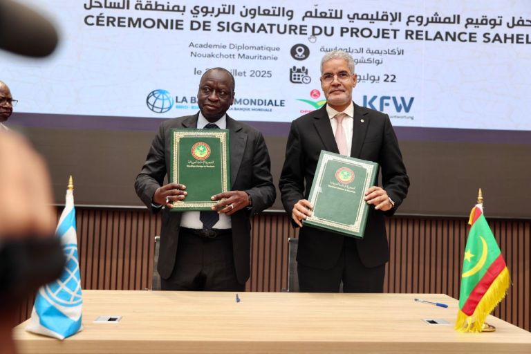 وقّعت موريتانيا وتشاد، اليوم الثلاثاء في نواكشوط، اتفاقية تمويل المشروع الإقليمي للتعلّم والتعاون التربوي في منطقة الساحل المعروف بـ“انطلاق الساحل”، بتمويل إجمالي قدره 137 مليون دولار أمريكي من البنك الدولي وبدعم ألماني.