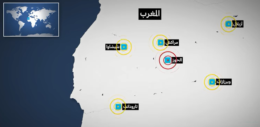 بلغت قوة الزلزال العنيف الذي ضرب مناطق في المغرب 7 درجات على مقياس ريختر كما ذكر المركز الوطني للبحث العلمي والتقني الذي أوضح أن مركزه يقع في إقليم الحوز جنوب غرب مدينة مراكش التي تعتبر مقصدا سياحيا كبيرا.
