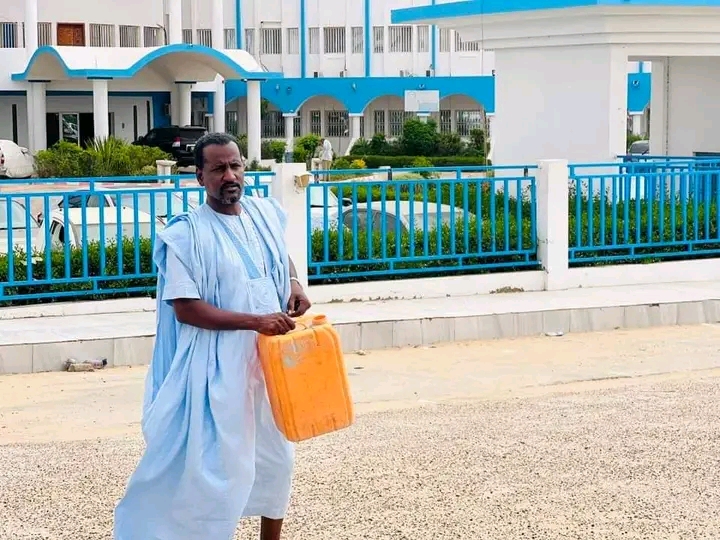 احتج النائب البرلماني السابق عن حزب الاصلاح و التنمية "تواصل" محمد محمد امبارك أمام مقر الشركة الوطنية للماء بطريقته الخاصة على الانقطاعات المتكرر للماء فى العاصمة انواكشوط.