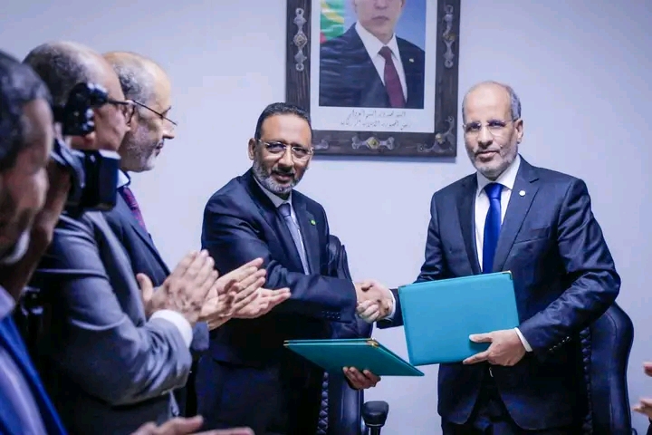 وقع معالي المندوب العام للتضامن الوطني ومكافحة الإقصاء، السيد الشيخ ولد بد، ومعالي وزير التكوين المهني والصناعة التقليدية والحرف، السيد محمد ماء العينين ولد أييه، اتفاقية شراكة بين القطاعين في نواكشوط.