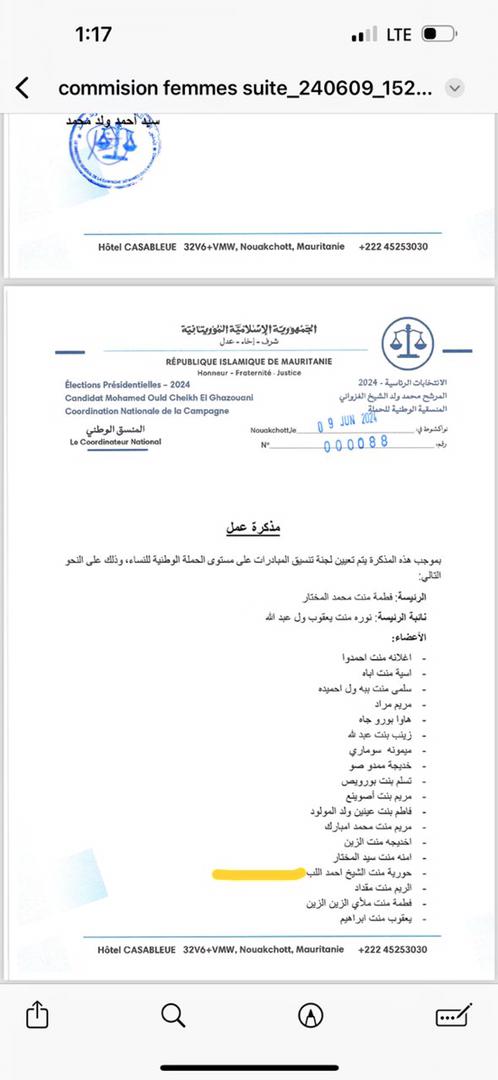 عينت منسقية الحمله الوطنيه للمرشح محمد ولد الغزوانى الناشطة السياسية الدكتورة حوريه اللب عضوا في لجنة تنسيق المبادرات للحملة الوطنية للنساء.