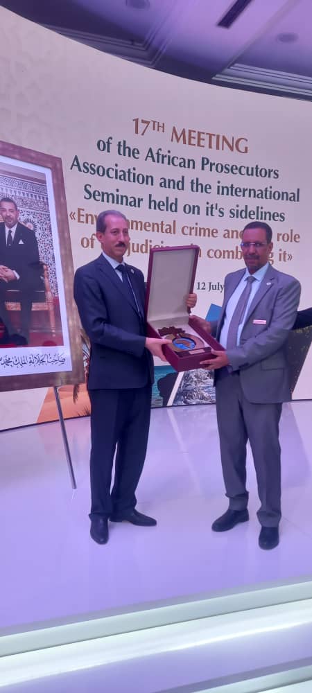 وعلى هامش أعمال المؤتمر - الذي يتواصل حتى الجمعة- تسلم سيادة المدعي العام درع تكريم مقدم من طرف مولاي الحسن الداكي الوكيل العام للملك، رئيس النيابة العامة في المملكة المغربية.