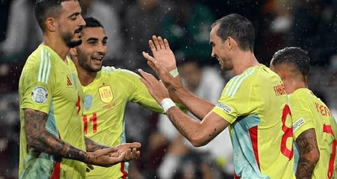 فاز منتخب إسبانيا بنتيجة عريضة على منافسه منتخب سويسرا 4-1 ، الأحد في الجولة الثانية من منافسات المجموعة الرابعة (المستوى الأول) لبطولة دوري الأمم الأوروبية.