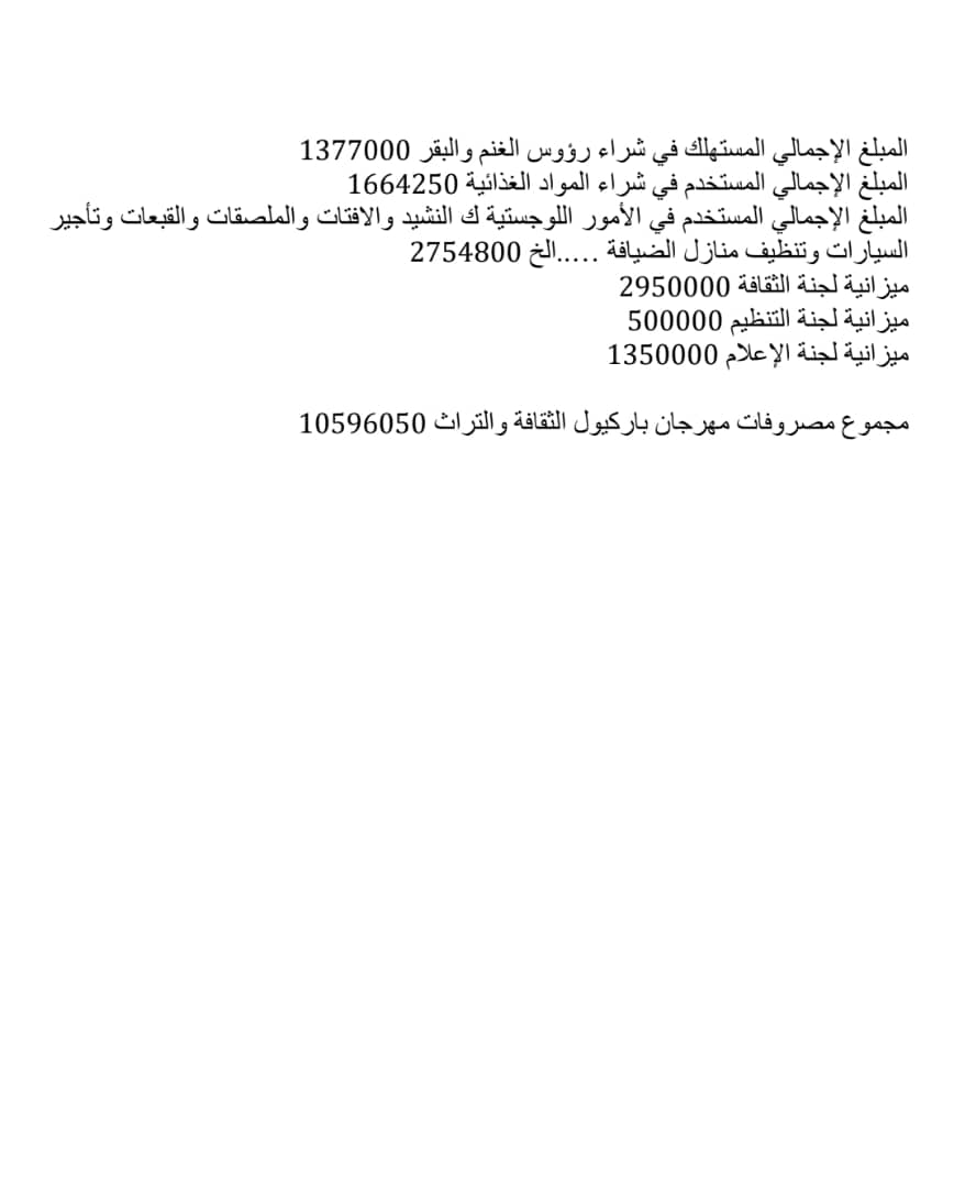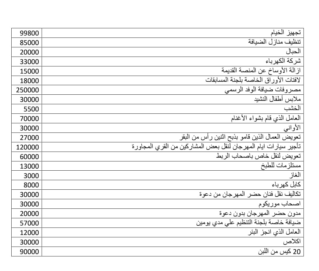 في الصور التقرير المالي للمهرجان ، وأسماء المتبرعين.