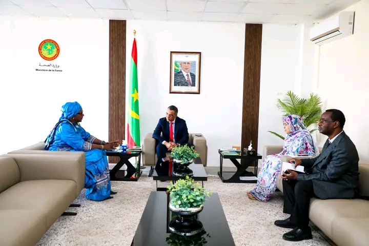 استقبل معالي وزير الصحة، السيد محمد محمود ولد اعل محمود، اليوم الاثنين في مكتبه، سعادة الممثلة المقيمة لمنظمة الصحة العالمية في بلادنا، السيدة شارلوت فاتي نجاي.