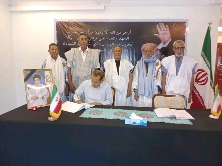 تعرب سفارة الجمهورية الإسلامية الإيرانية في نواكشوط عن خالص شكرها و عظيم امتنانها لحكومة الجمهورية الإسلامية الموريتانية الشقيقة، و للشعب الموريتاني الكريم، و لسائر الشخصيات و الهيئات و مختلف فئات المجتمع الموريتاني، الذين عبّروا، من خلال حضورهم مراسم دفتر التعزية في استشهاد قائد الثورة الإسلامية الإيرانية الشهيد، عن صادق مواساتهم و تضامنهم مع الجمهورية الإسلامية الإيرانية.
