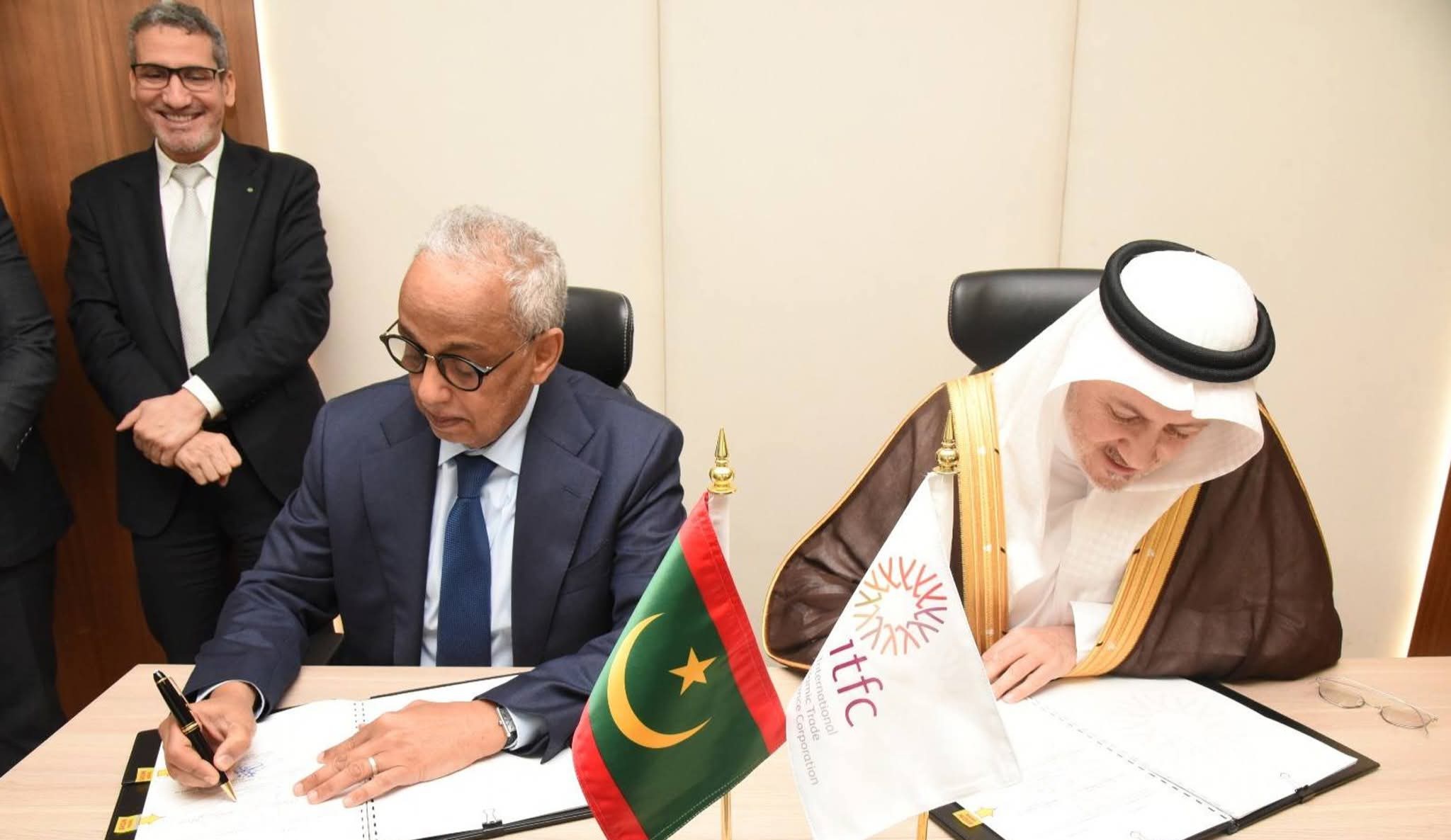 ووقع الاتفاقية وزير الشؤون الاقتصادية والتنمية الدكتور عبد الله ولد سليمان ولد الشيخ سيديا، بحضور الرئيس التنفيذي للمؤسسة الدولية الإسلامية لتمويل التجارة المهندس أديب يوسف الأعمى، ومحافظ البنك المركزي الموريتاني محمد الأمين الذهبي، وسفير موريتانيا لدى السعودية المختار ولد داهي.