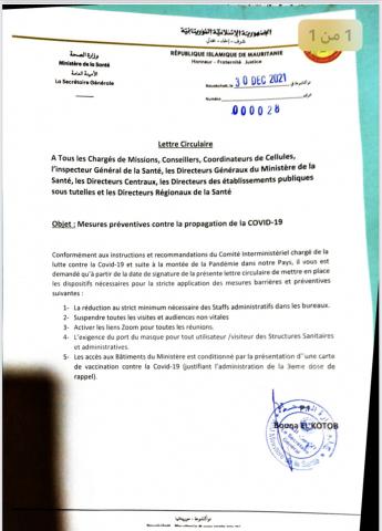 وحسب تعميم أصدرته الوزارة اليوم فإن من بين الإجراءات الجديدة أيضا، فرض ارتداء الكمامة داخل المؤسسات الصحية، واستظهار بطاقة التلقيح التي تؤكد تلقي الجرعة الثالثة المعززة للحماية ضد فيروس كورونا، لدخول مباني الوزارة.