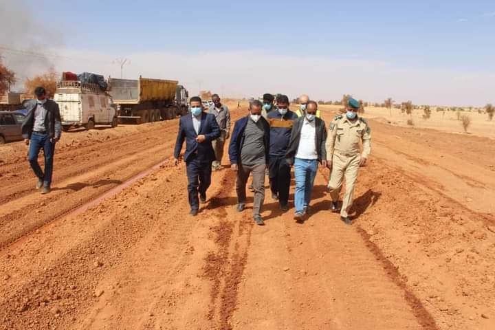 عاين وزير التجهيز والنقل السيد محمدو امحيميد رفقة السلطات الإدارية والأمنية في ولاية البراكنة اليوم السبت 8 يناير 2022 ، الأشغال ووقف ميدانيا على العمل في جميع ورش المقطع الثاني من إعادة تأهيل وتوسيع وبناء طريق الاك_بوتلميت؛ الذي يربط بين الاك وآجوير .