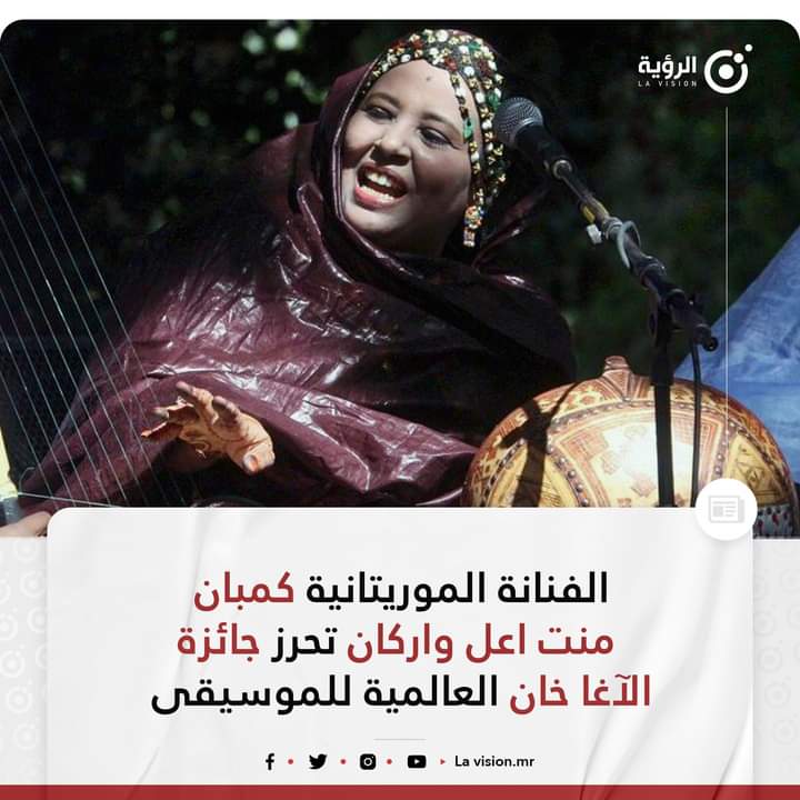 أحرزت الفنانة الموريتانية كمبان منت اعلي واركان، جائزة الآغا خان للموسيقى لهذا العام، ضمن 10 فائزين، من بينهم فنانون من مالي، وتنزانيا، وأفغانستان، وإيران، وباكستان، والهند، والمملكة المتحدة، وفق ما أعلنت لجنة تحكيم الجائزة.