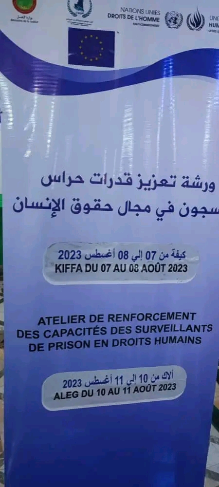 أطلقت مديرية الشؤون الجنائية وإدارة السجون بوزارة العدل من كيفة عاصمة ولاية لعصابة اليوم الإثنين 07_08_2023 أعمال ورشة لتعزيز قدرات حراس السجون في مجال حقوق الإنسان.
