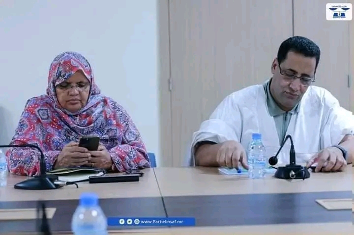 و أضاف البيان : أن الحزب استعرض اللقاءات التي جمعته مع لجنتي نساء وشباب الحزب ومنتخبي الحزب على مستوى انواكشوط ورؤساء المجالس الجهوية والفريق البرلماني لحزب الإنصاف، وكانت هذه اللقاءات فرصة لتقديم التوجيه والتأكيد على ضرورة القرب من الناخبين والإشادة بعمل الفريق البرلماني خلال الدورة البرلمانية الأخيرة، كما تم التأكيد على ضرورة التنسيق مع الجهاز الحكومي وقد تم، في اللقاء مع رؤساء المجالس الجهوية، إبراز الجانب التنموي.