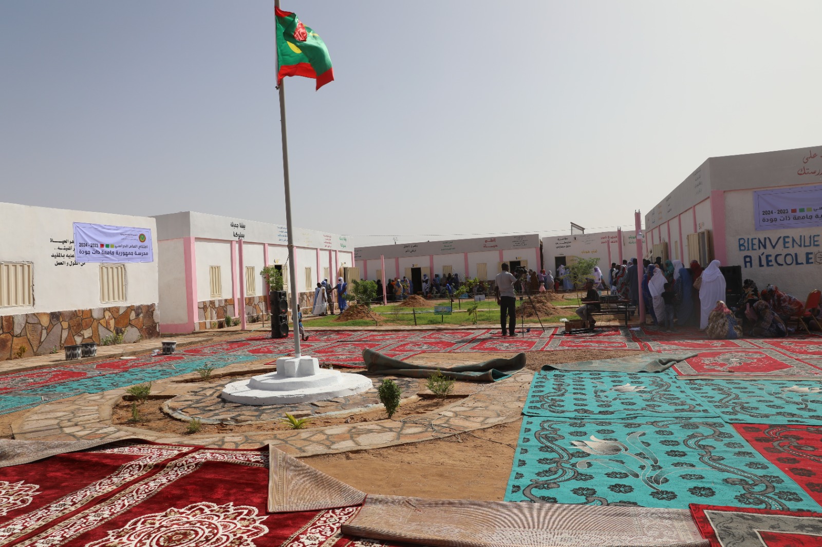 وها نحن بفضل الله وعونه، نحتفل معكم اليوم بتسليم سلطات الولاية، المدرسة رقم5 بالمقاطعة، بعد أن اكتملت عملية ترميم وتجهيز شاملة لأقسامها وطاولاتها وسبوراتها، بالإضافة إلى بناء وتجهيز مكتب إداري ومطعم ومخزن للكفالة المدرسية، وملعب وساحة خضراء بها.
