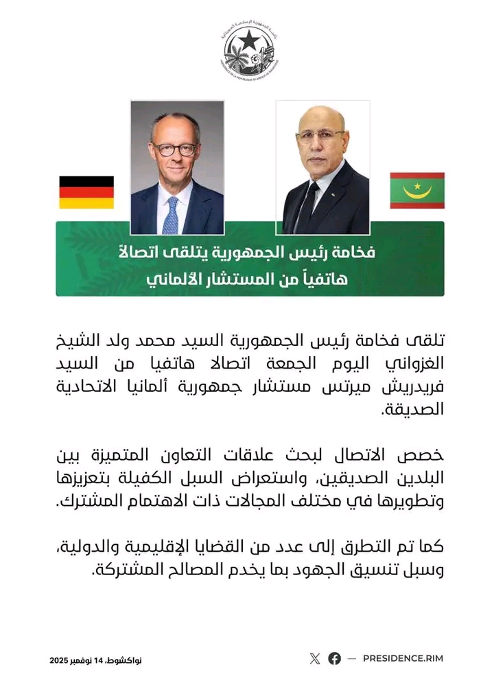 عاد الرئيسِ الموريتاني، محمد ولد الشيخ الغزواني، إلى نواكشوط قادما من مدينة النعمة، بعد زيارة ميدانية شاملة لولاية الحوض الشرقي، شملت جميع مقاطعاتها دون استثناء.