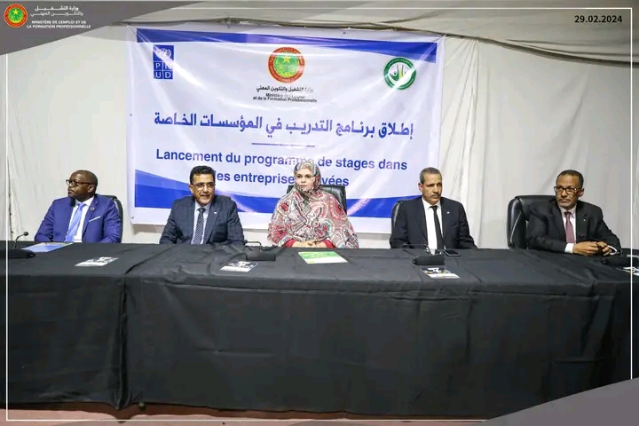 أطلقت وزيرة التشغيل زينب بنت أحمدناه، اليوم الخميس، بالعاصمة نواكشوط، البرنامج الوطني للتدريب في المؤسسات الخاصة المستحدث في إطار الشراكة بين القطاع والاتحاد الوطني لأرباب العمل الموريتانيين وبرنامج الأمم المتحدة للإنماء.