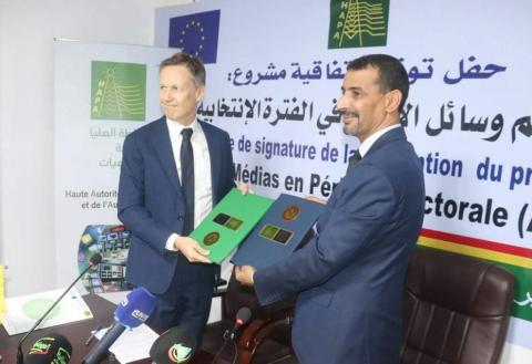 وُقع اليوم (الخميس) في نواكشوط، اتفاق بين السلطة العليا للصحافة والسمعيات البصرية (هابا) و مندوبية الاتحاد الأوروبي في موريتانبا، تتعلق بمشروع دعم وسائل الإعلام خلال الفترة الانتخابية.