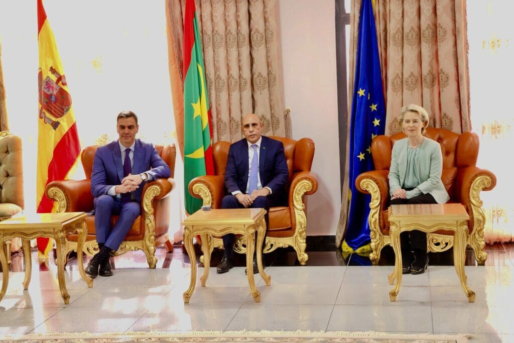 استقبل الرئيس محمد ولد الشيخ الغزواني، صباح اليوم بمطار نواكشوط الدولي أم التونسي، معالي رئيس الوزراء الإسباني بيدرو سانشيز، والسيدة أورسولا فون دير لاين، رئيسة المفوضية الأوروبية.