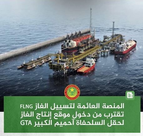 قالت وزارة البترول و المعادن والطاقة، أن المنصة العائمة لتسييل الغاز الطبيعي FLNG المسماة جيمي تتأهب لدخول الحدود المشتركة بين موريتانيا والسنغال، استعدادا لوصولها لوجهتها الأخيرة واستخدامها في إنتاج وتسييل الغاز الطبيعي ضمن منشآت حقل السلحفاة آحميم الكبير GTA.
