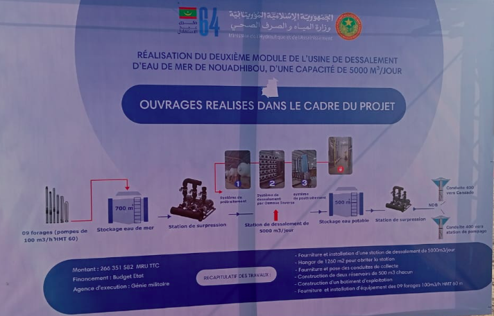 دشن الرئيس محمد ولد الغزواني صباح اليوم الجمعة محطة تحلية المياه في العاصمة الاقتصادية نواذيبو، التي بلغت تكلفتها 2,6 مليار أوقية قديمة.
