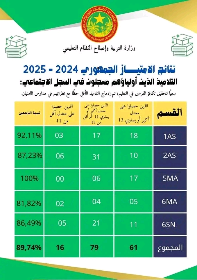 أوضح الوزير الأول أن برنامج "الامتياز الجمهوري"، الذي أطلقه رئيس الجمهورية عام 2024، يهدف إلى تسهيل دخول أبناء أسر السجل الاجتماعي إلى إعداديات وثانويات الامتياز. ويتم ذلك من خلال تحديد عتبة نجاح خاصة بهم (أقل من عتبة النجاح الرسمية).