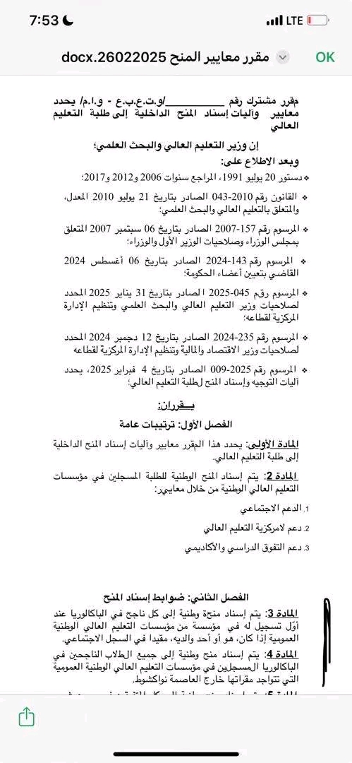 نص المادة الثالثة من المقرر المحدد لمعايير وآليات إسناد المنح الداخلية.