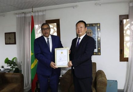 كرم معالي وزير التعليم العالي والبحث العلمي، السيد يعقوب ولد أمين، اليوم الإثنين بمكتبه في نواكشوط، مدير معهد “كونفوشيوس” لتعليم اللغة الصينية، السيد غو غوانغ وي، بمناسبة انتهاء مأموريته.