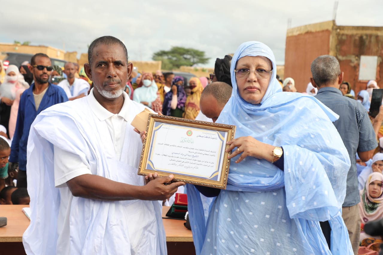 وقد شهد الحفل حضورًا لافتًا من أهالي التلاميذ، والأساتذة، والفاعلين التربويين، والسلطات الإدارية ممثلة في مدير ديوان والي الحوض الشرقي السيد سيدي محمد ولد محمد عبد الله، حيث تم توزيع جوائز نقدية وشهادات تقديرية على الطلاب الأوائل، إلى جانب تكريم المعلمين والطواقم الإدارية المتميزة خلال العام الدراسي.