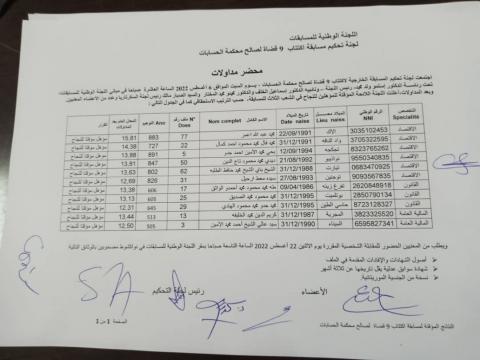 أعلنت اللجنة الوطنية للمسابقات اليوم السبت أسماء المؤهلين للنجاح في مسابقة اكتتاب 9 قضاة لصالح محكمة الحسابات. وبلغ عدد الناجحين في المسابقة 11 شخصا، في تخصصات الاقتصاد والقانون والمالية العامة. ويمكن الاطلاع على أسماء الناجحين في اللائحة المرفقة.