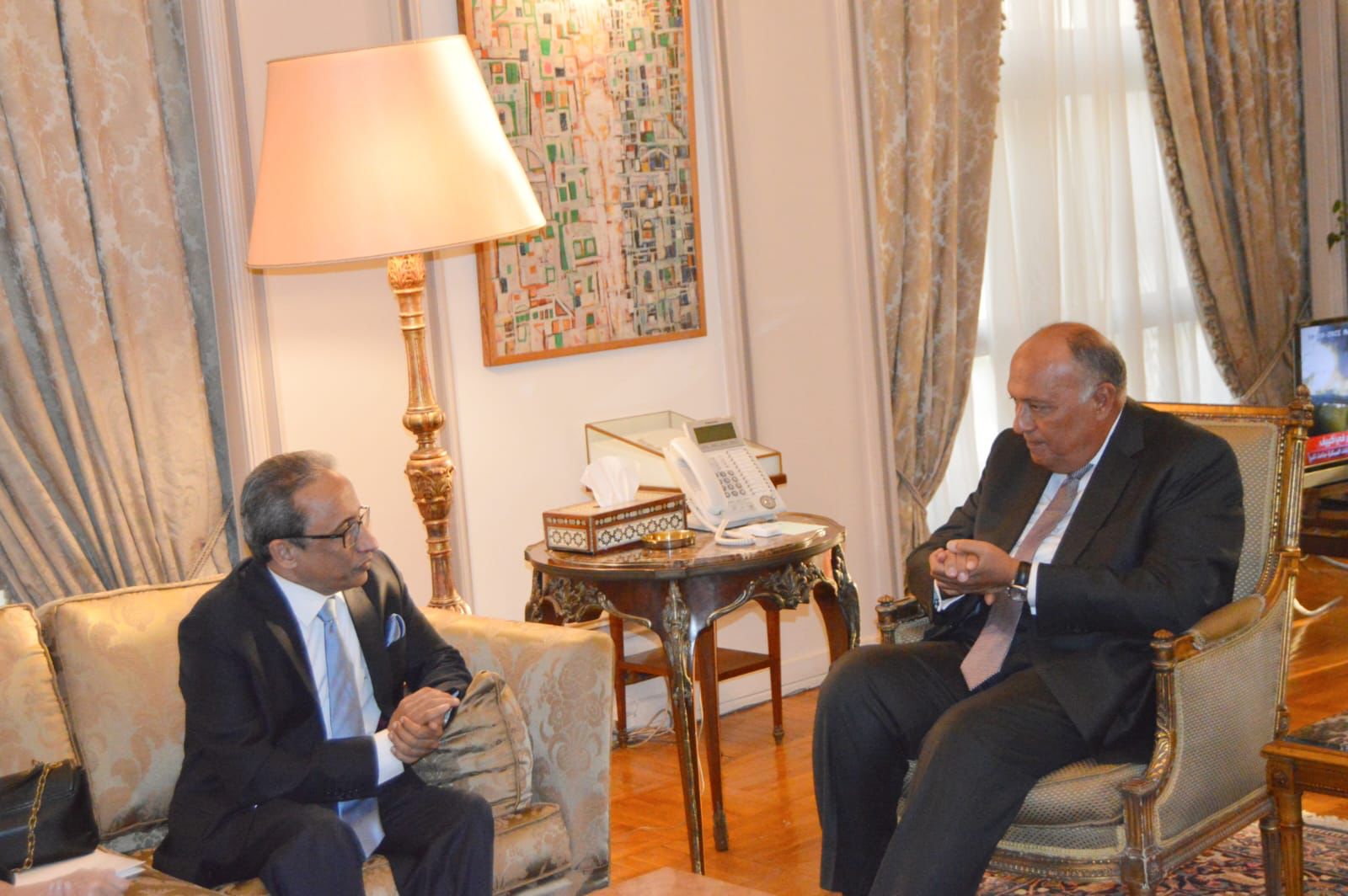 قام معالي الامين العام لمجلس الوحده الاقتصادية العربية السفير /محمدي أحمد الني، بزياره لمعالي وزير الخارجية المصري / سامح شكري في مكتب معاليه الموقر.