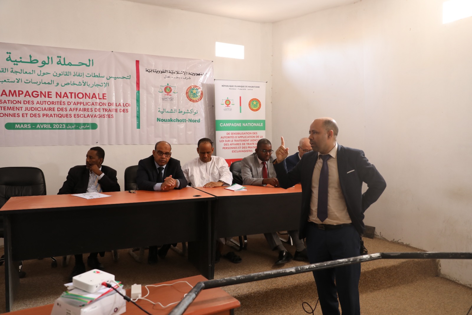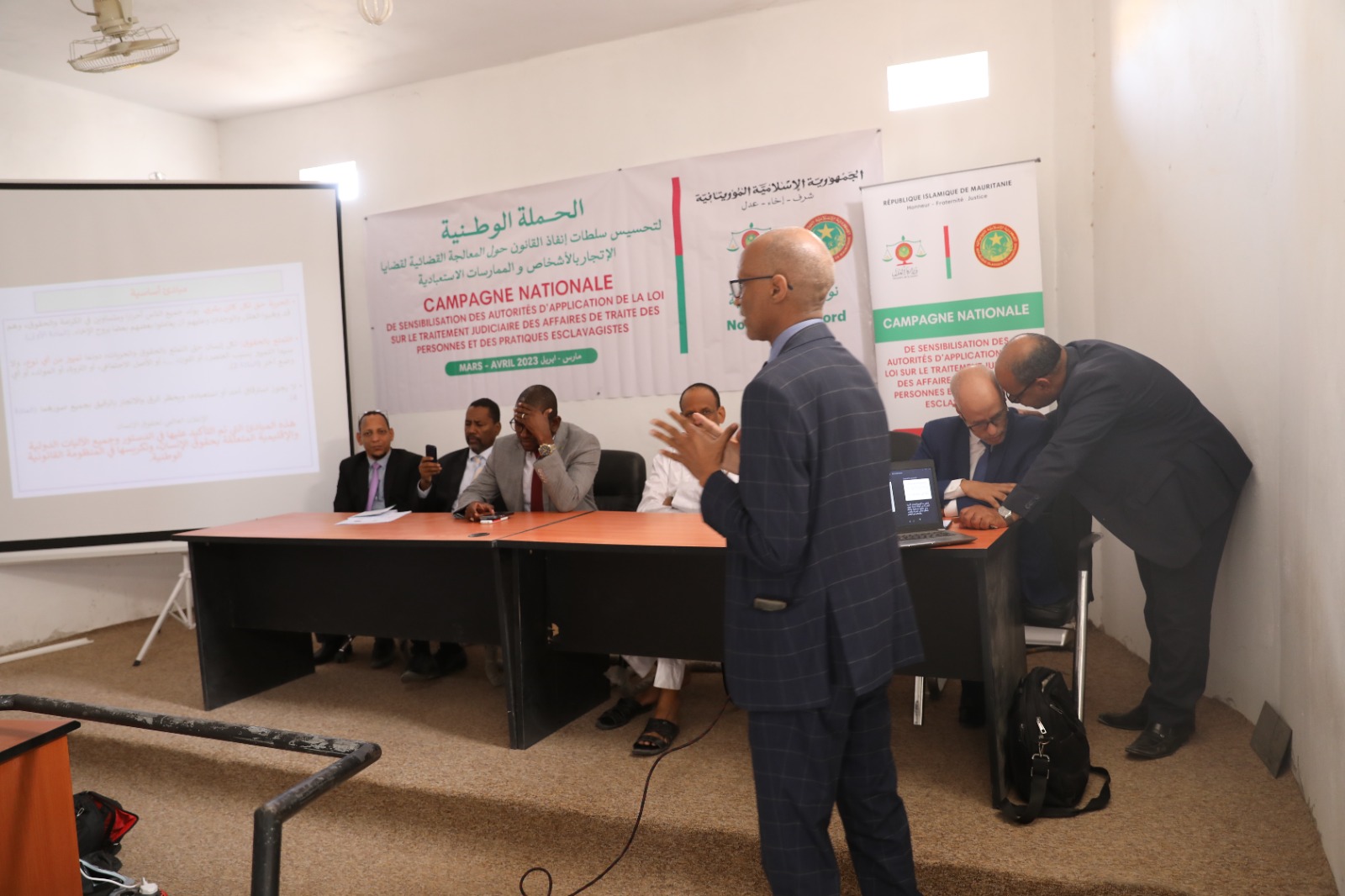 احتضن قصر العدل بولاية انواكشوط الشمالية اليوم الجمعة 07 إبريل 2023 فعاليات المرحلة الثالثة من الحملة التحسيسيية التي تنفذها وزارة العدل لصالح سلطات إنفاذ القانون حول المعالجة القضائية لقضايا الاتجار بالأشخاص والممارسات الاستعبادية.