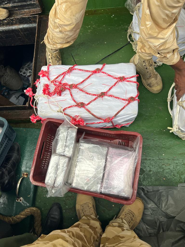 وقد جرت عملية التوقيف، التي تم تنفيذها بتنسيق تام مع الجمارك الوطنية، يوم 18 من الشهر الجاري في أقصى الجهة الشمالية الغربية من المنطقة الاقتصادية الخالصة، بعد أيام من الرصد والمتابعة.