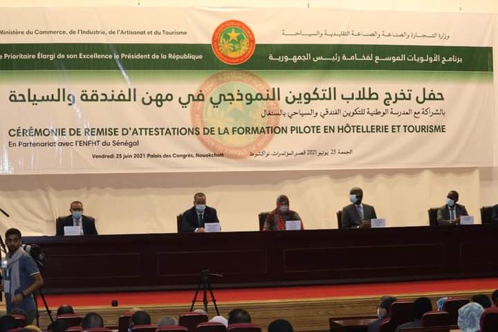 أشرفت وزيرة التجارة والصناعة والصناعة التقليدية والسياحة السيدة الناها بنت حمدي ولد مكناس، اليوم الجمعة، بقصر المؤتمرات بالعاصمة نواكشوط، على حفل تخرج مئات الشباب والفتيات الموريتانيين من دورة التكوين النموذجي في الفندقة والسياحة التي استمرت ستة أشهر.