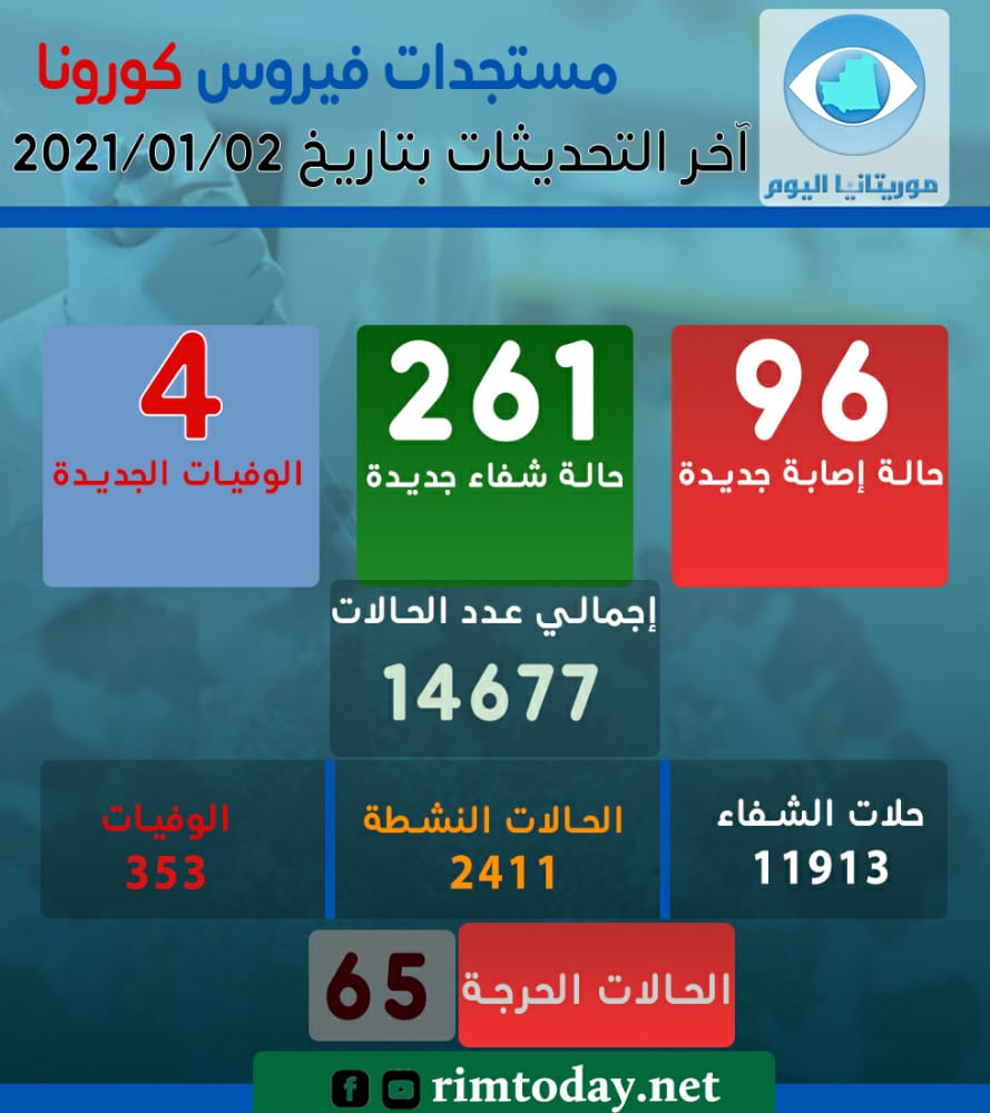 كشفت وزارة الصحة عن الحالة الوبائية الخاصة بجائحة كورونا خلال 24 ساعة الماضية في موريتانيا.