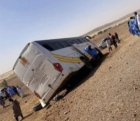 ووقع الحادث ظهر اليوم السبت، جراء محاولة السائق تفادي الاصطدام بمواشي على الطريق، وهو ما أدى لانزلاق الحافلة عن الطريق، وانفجار أحد إطاراتها، حيث كادت أن تنقلب وسط هلع من الركاب.
