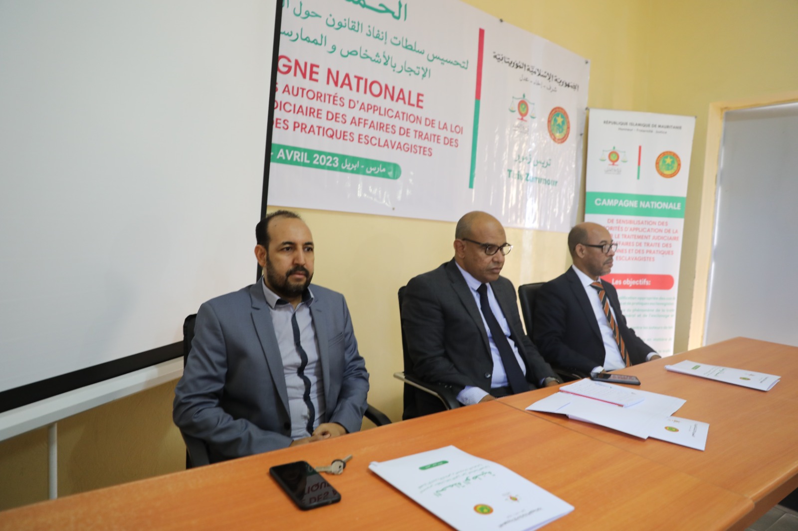 اختتمت بعثة وزارة العدل المشرفة على الحملة التحسيسية لسلطات إنفاذ القانون حول المعالجة القضائية لقضايا الاتجار بالأشخاص والممارسات الاستعبادية، اليوم الأربعاء 12 ابريل 2023 أعمال المحطة الأخيرة من محور الشمال من قصر العدل في مدينة ازويرات عاصمة ولاية تيرس الزمور.